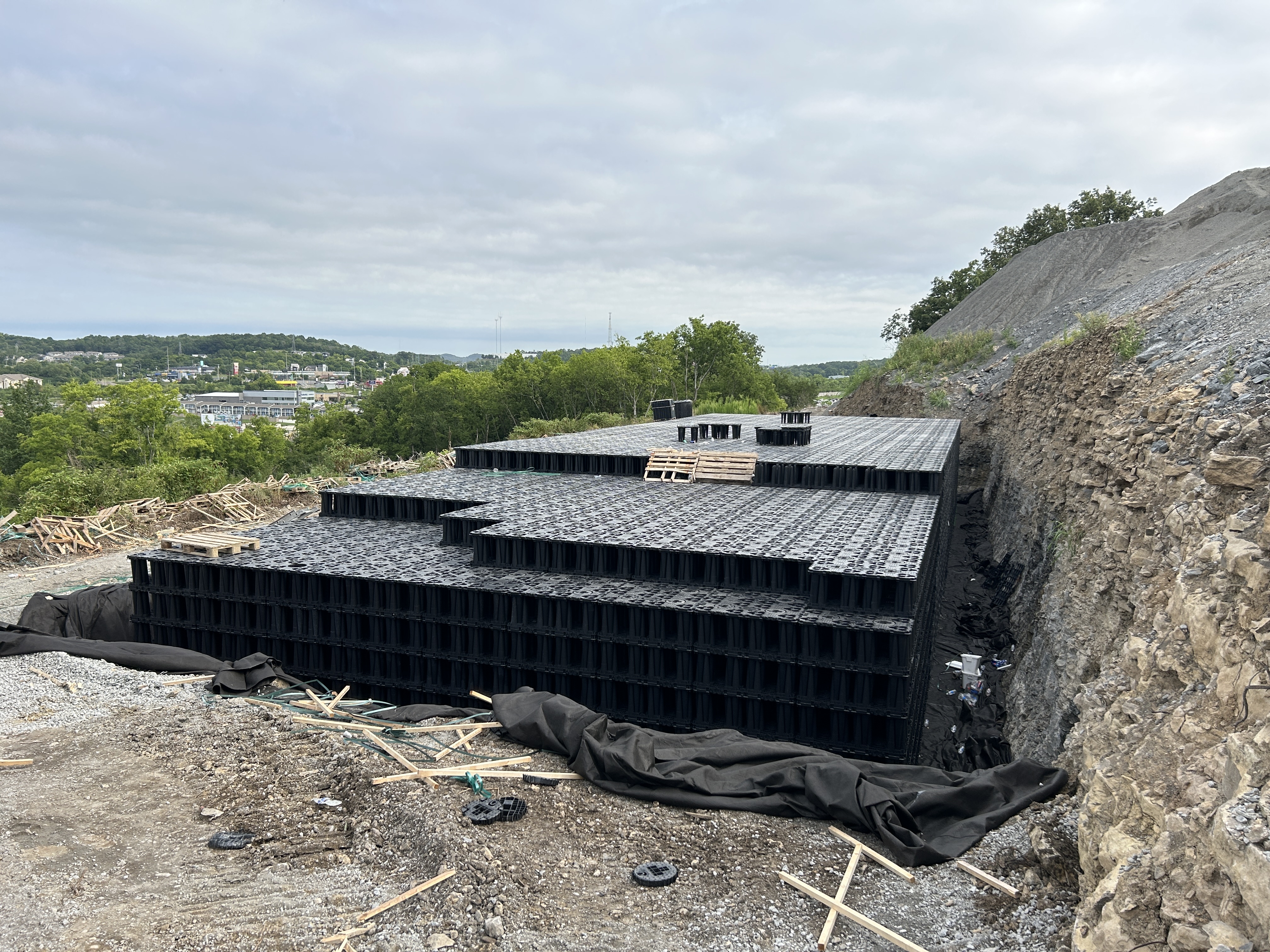 The AquaCell design provided substantial reduction in system footprint, simplified installation, and eliminated the need for deep trenching required by the original pipe design. The modular configuration improved handling efficiency, reduced material cost, and allowed the contractor to complete installation within the compressed summer 2025 schedule. The final system delivered the required volume while enhancing long-term maintainability and structural reliability.